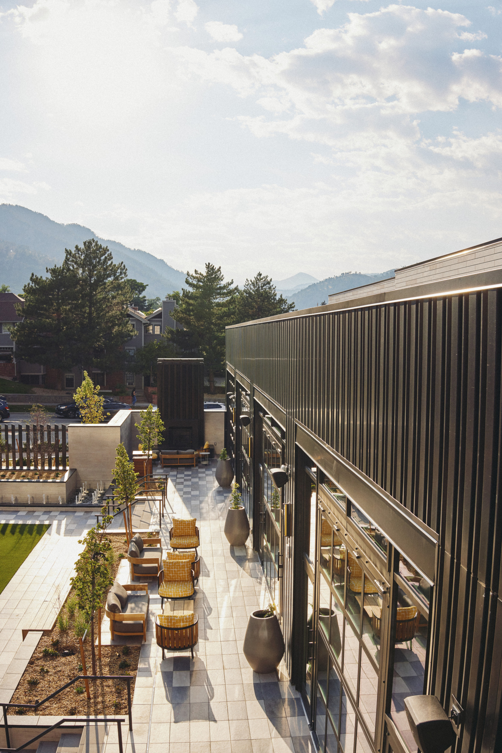 Beyond restoration, the design establishes the site as a community-oriented destination, with a porous street edge that draws neighbors, students, and visitors into the courtyard and shared spaces. A natural trail of locally sourced flagstone, integrated boulders, and organic edges evokes the Front Range, creating a pedestrian experience embedded in the landscape. Bicycle parking at key arrival points supports Boulder’s culture of active mobility and reinforces the hotel’s connection to its active community.