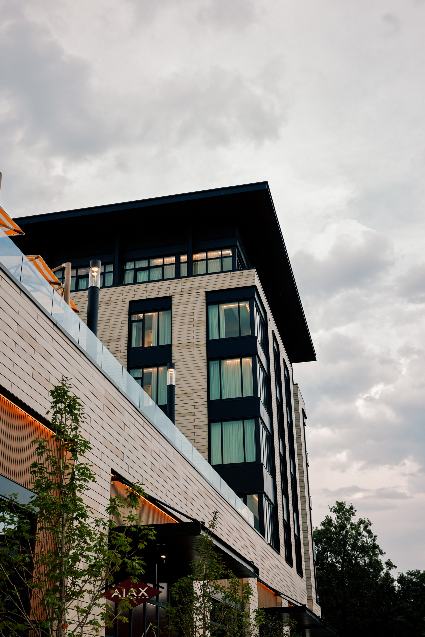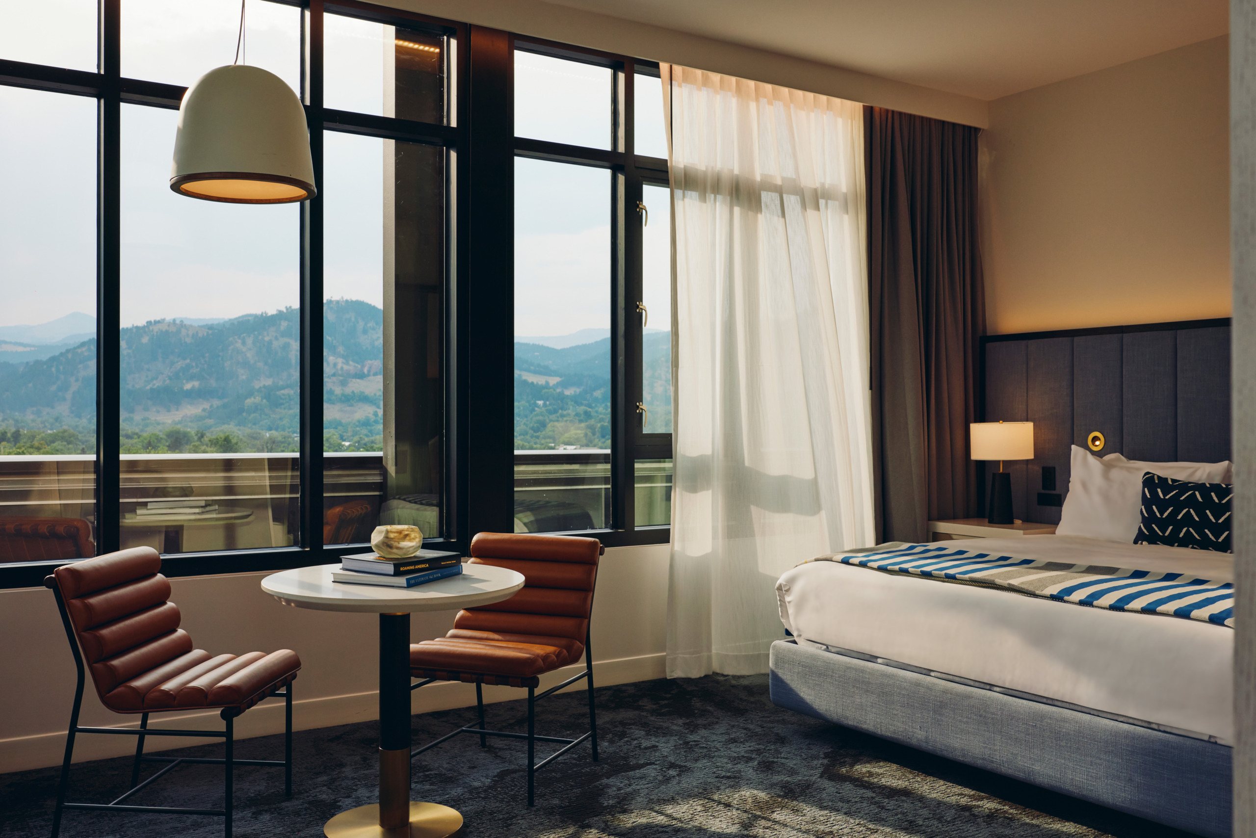 Natural ventilation was emphasized throughout, with oversized operable windows in every guestroom that welcome fresh mountain air while framing panoramic views. In working with the natural environment, the team carefully designed around a century-old underground spring to preserve its flow and, through coordinated environmental restoration efforts, removed soil contaminants from the site’s brownfield past. This ensured the project harmonizes with the land while setting a benchmark for sustainable hospitality.