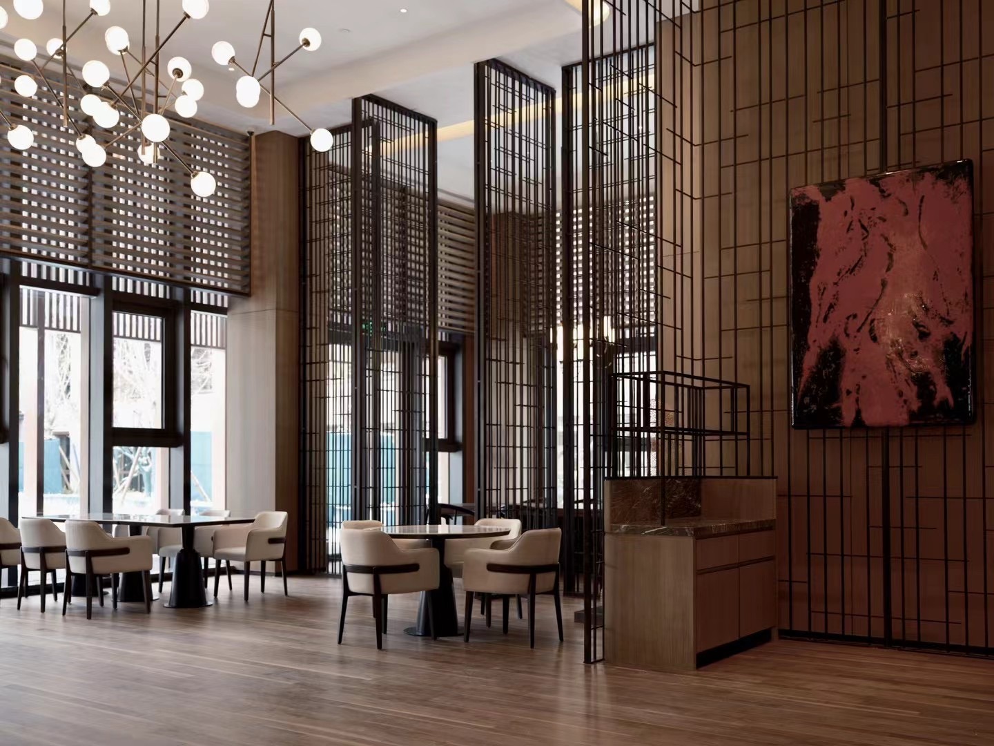 The Journey: In the guest corridors and room interiors, full-height curved art panels depict the flight of wild geese, creating a sense of movement and direction.