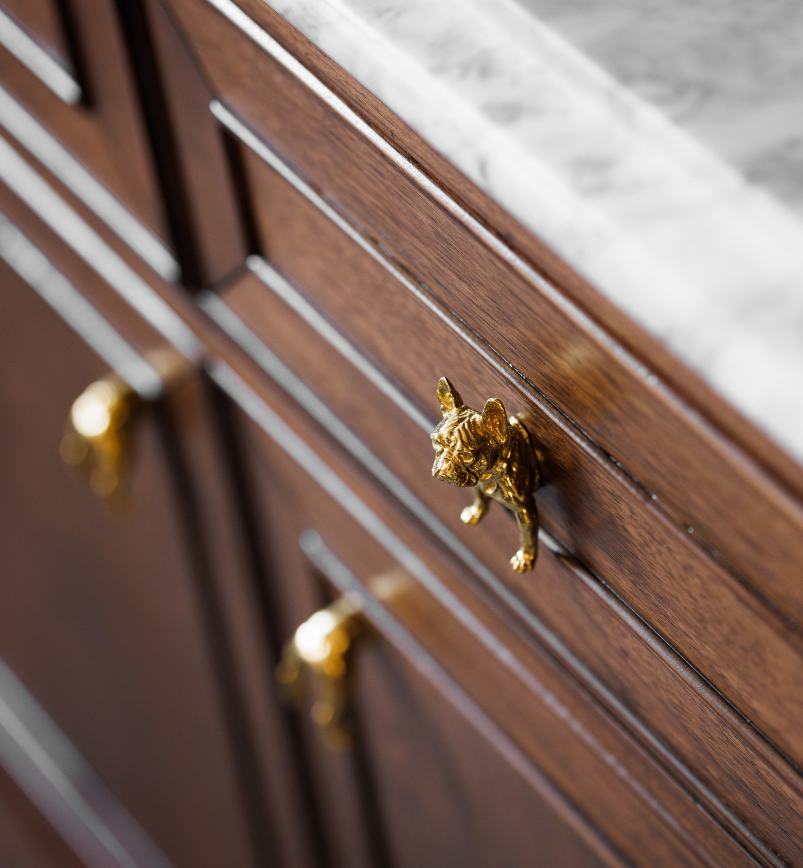 Every element was chosen for longevity and meaning. Durable, tactile textiles and warm wood finishes convey quality and permanence, while fine trims and polished metal accents lend quiet elegance.