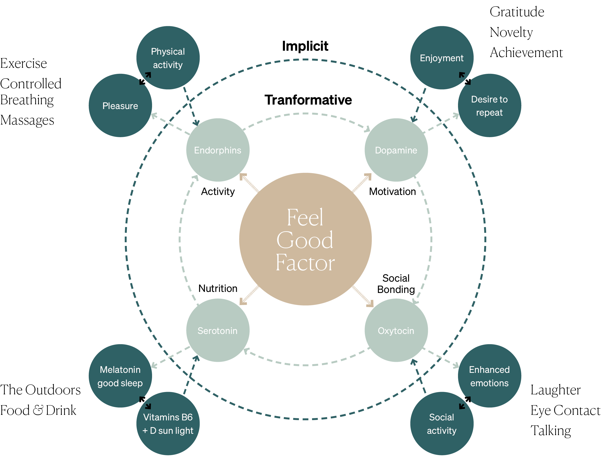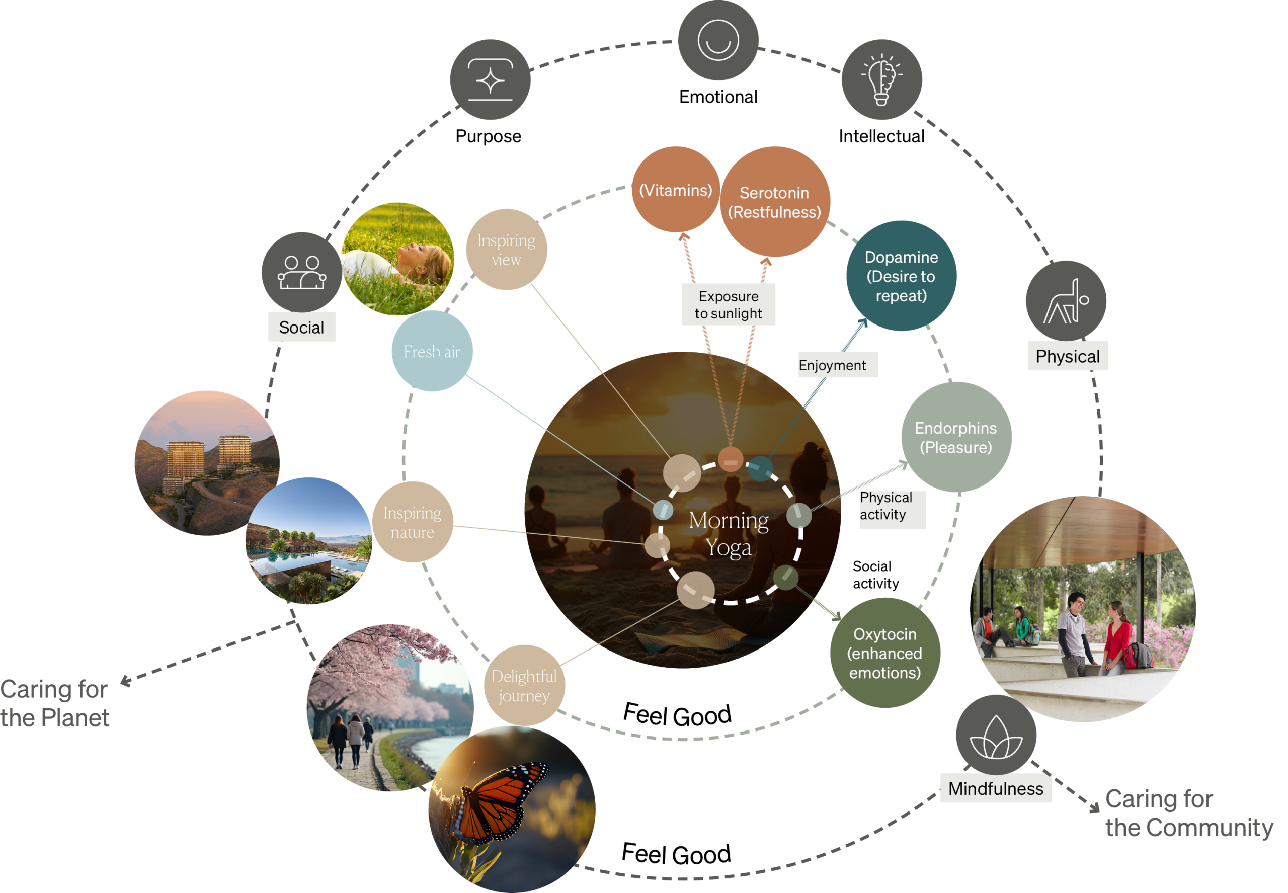 Here are some of the design principles we prescribe by — each thoughtfully curated to promote the natural release of neurochemicals that underpin wellbeing: